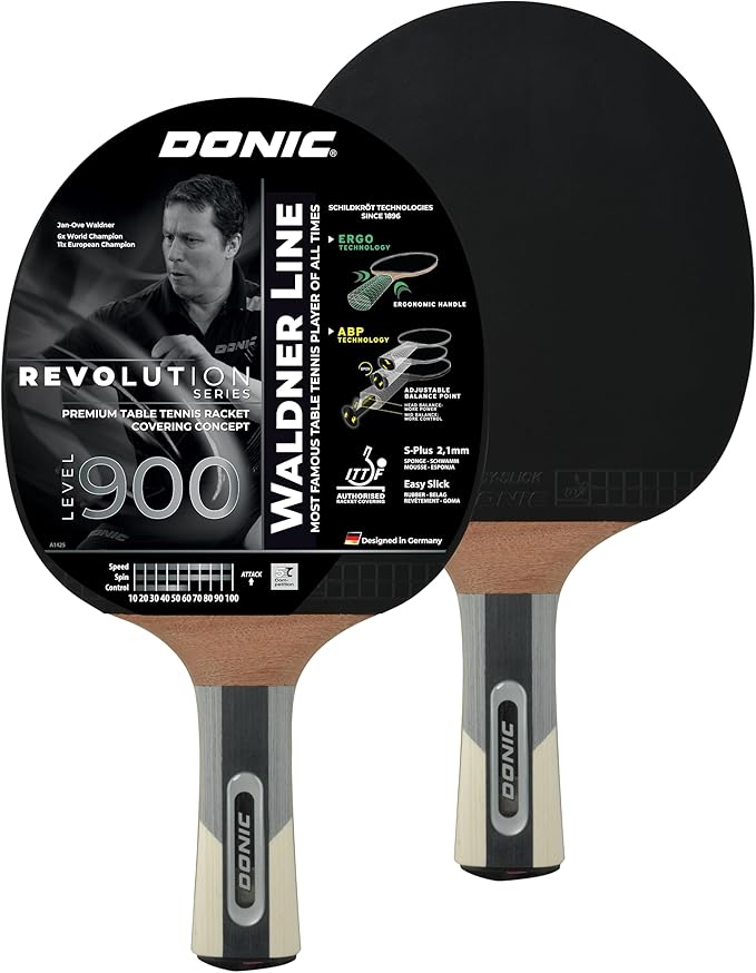 High-quality 900-level table tennis racket with a concave handle (for secure grip) and exclusive techniques for casual and offensive players.