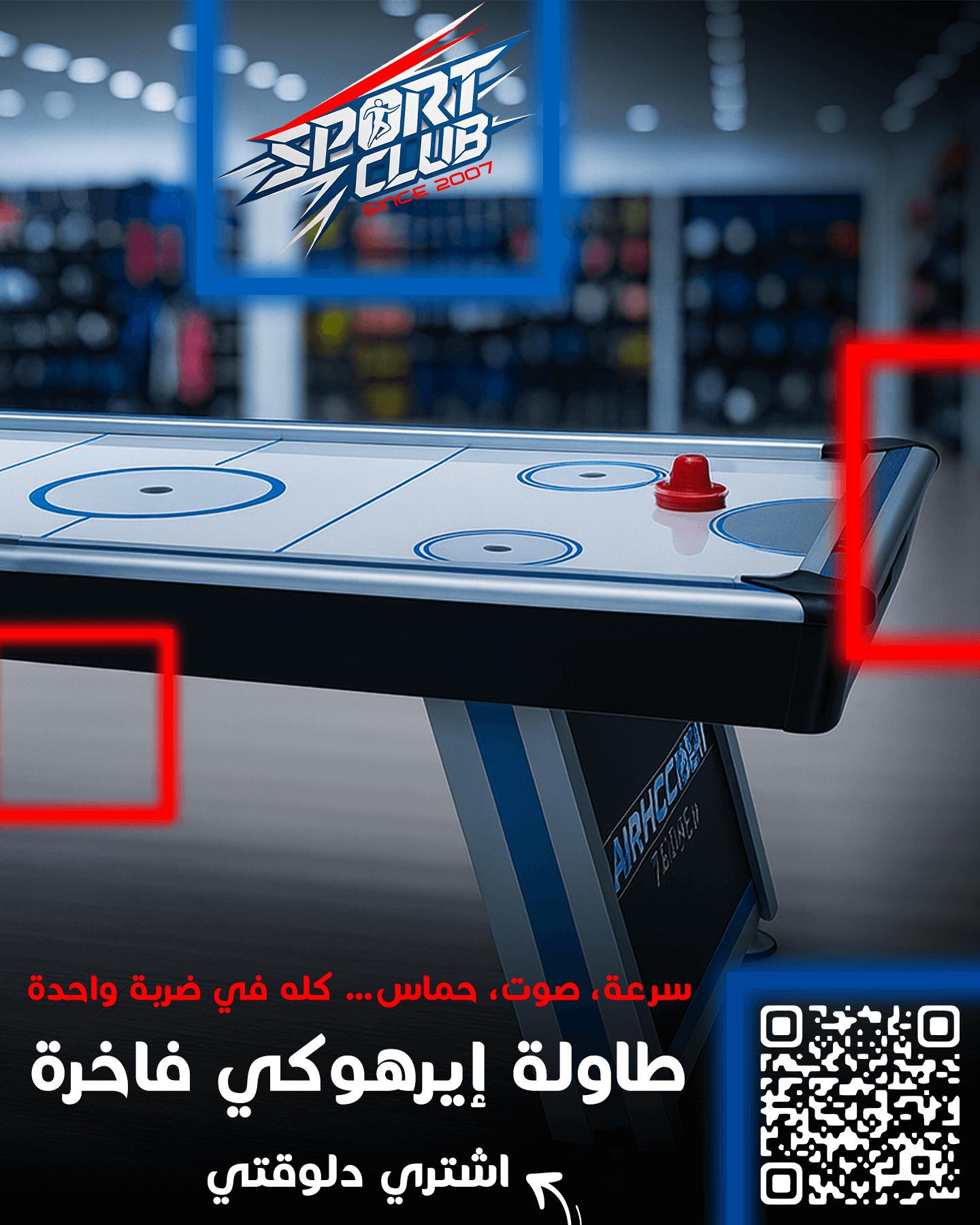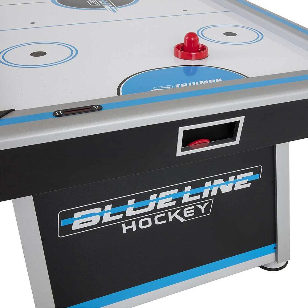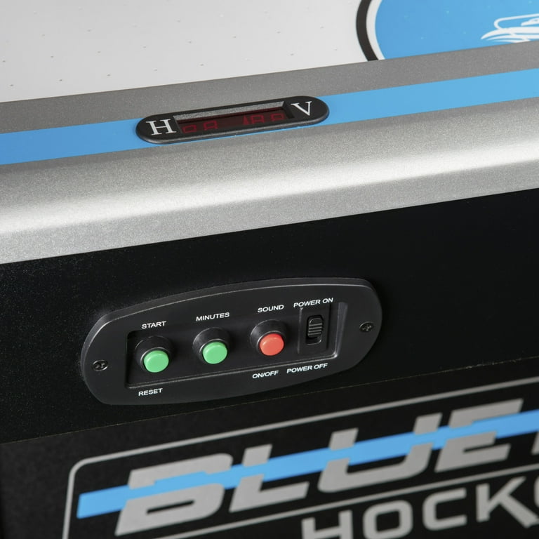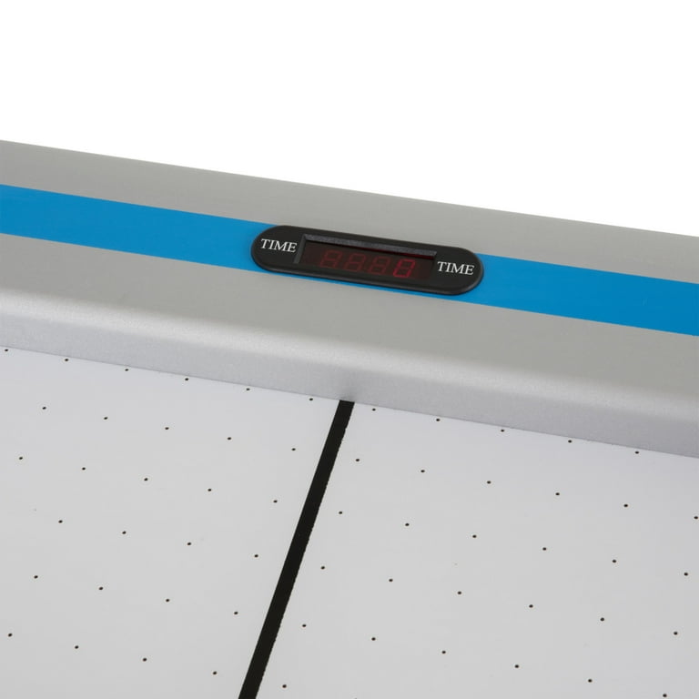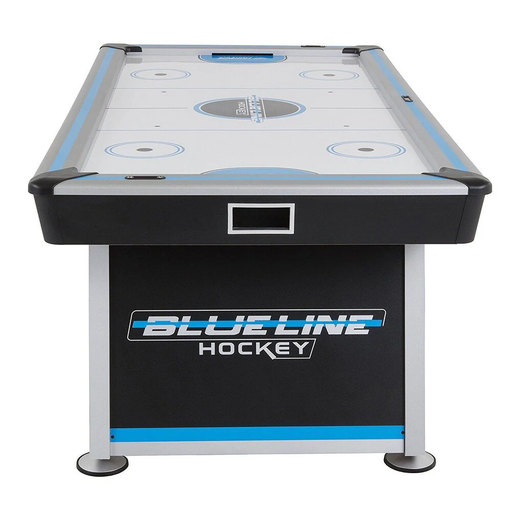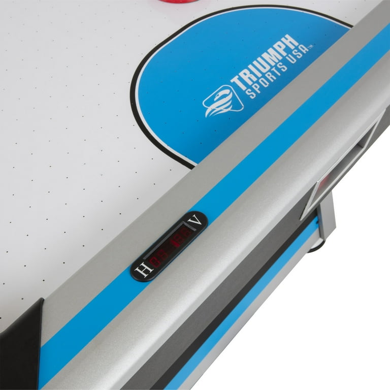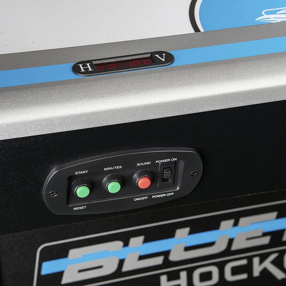 The arcade-style table features cool graphics, an electronic Score and time system,The revolutionized air flow course-plotting system maximizes the surface air flow zone for optimal play. Table showcases premium design features such as 5″ leg levelers and molded corners. If you love Air Hockey, this air Hockey table is a must have. Table is 213 cm x 107 cm x 81 cm ” H and weighs 167 lbs. Built-in inlay LED scoring and time Clock. Includes 2 red hockey pucks and red pushers.